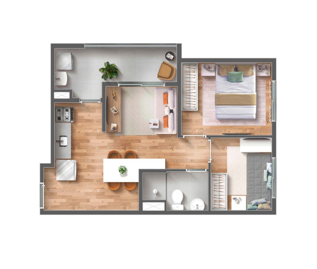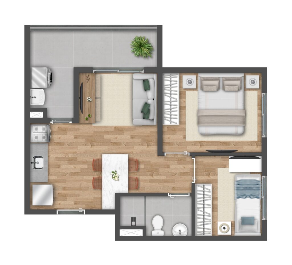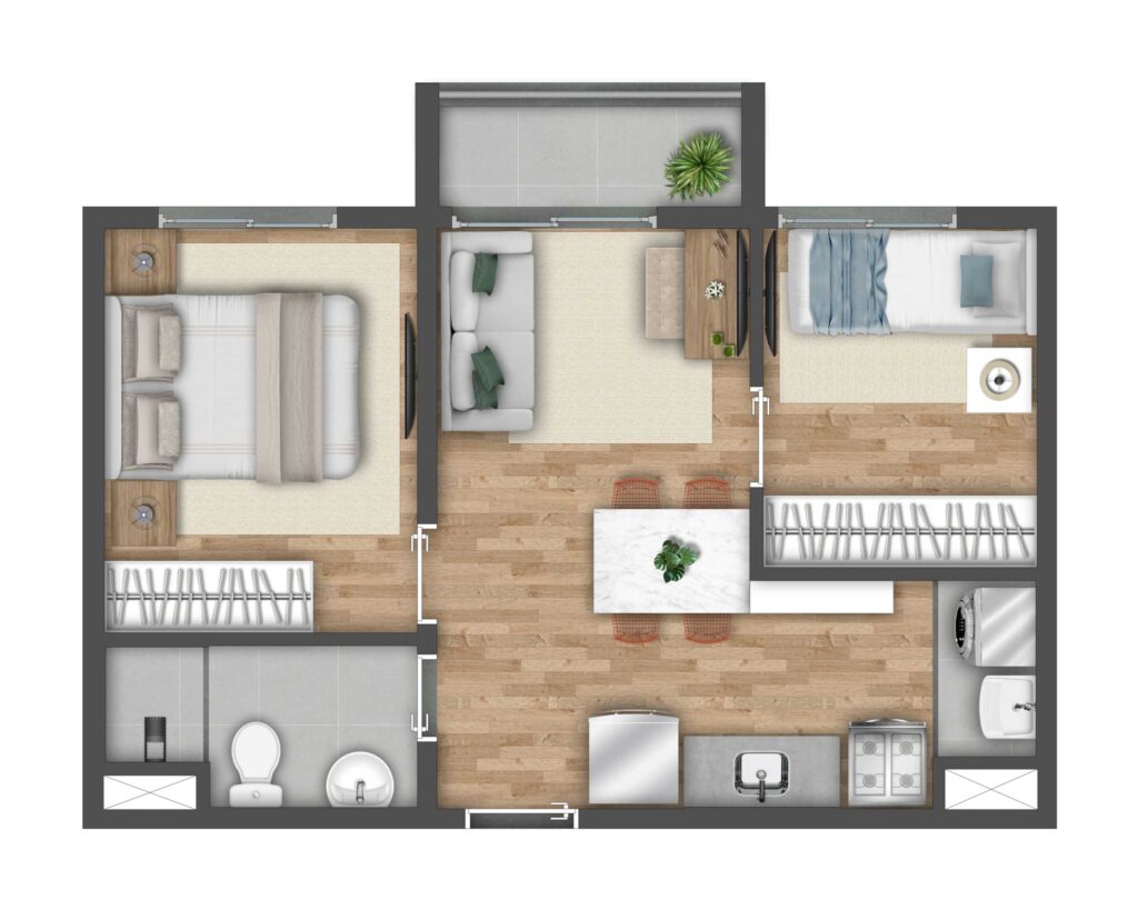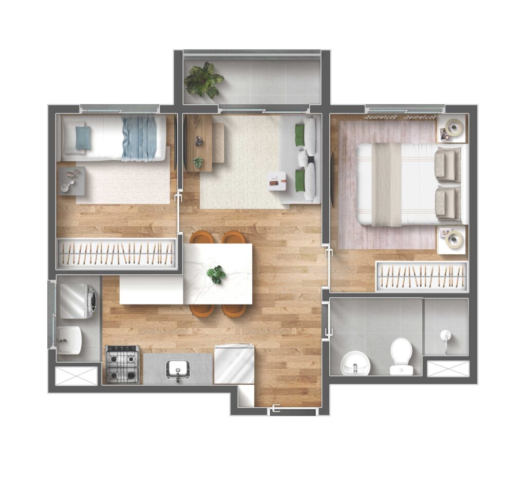 O projeto foi desenvolvido com foco em atender diferentes perfis de moradores. Por isso, conta com apartamentos bem distribuídos, que valorizam cada metro quadrado, proporcionando ambientes aconchegantes e funcionais. Além disso, as unidades possuem opções com varanda, o que garante mais ventilação natural e luminosidade, tornando os espaços ainda mais agradáveis.